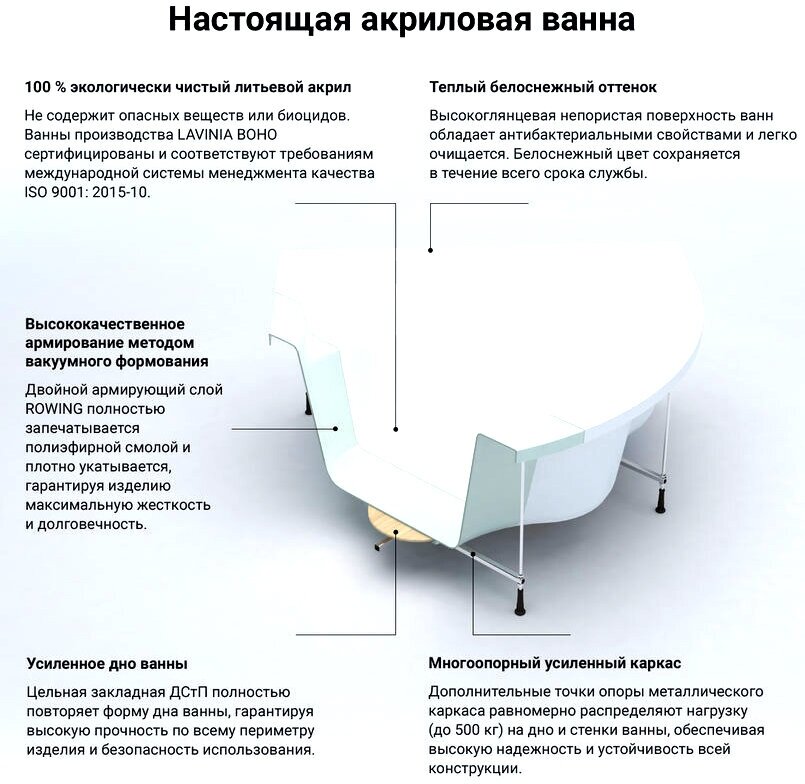 Угловая ванна акриловая 150 x 150 Lavinia Boho Aveo 37040150: акриловая ванна из литьевого акрила с усиленным армированным корпусом