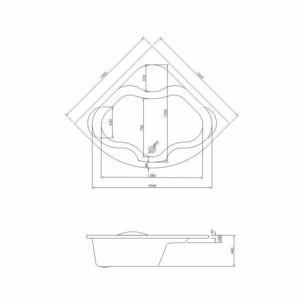 Угловая ванна акриловая 150 x 150 Lavinia Boho Aveo 37040150: акриловая ванна из литьевого акрила с усиленным армированным корпусом