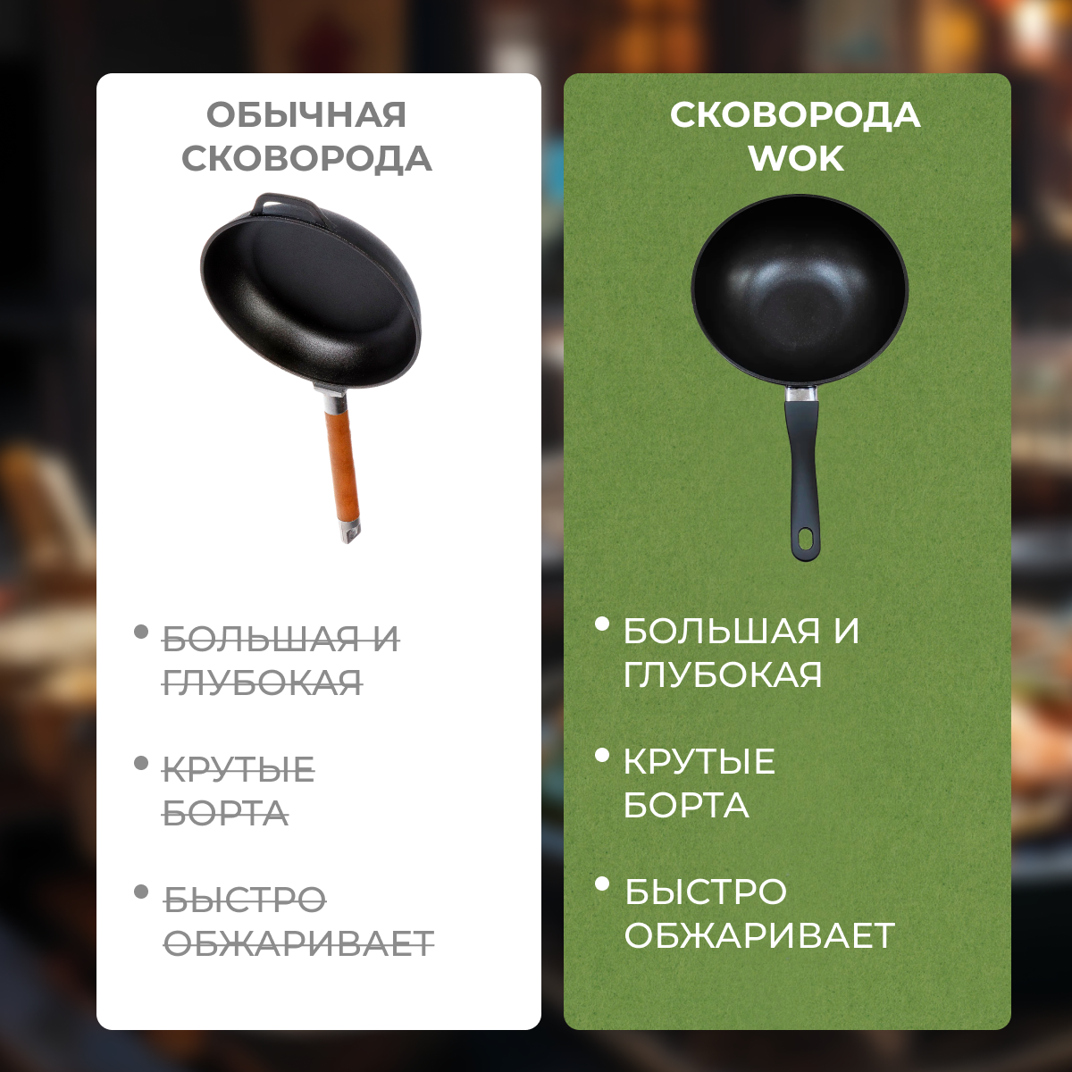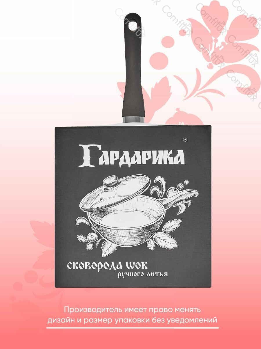 Сковорода вок 26 см с крышкой антипригарная, литая, с ручкой soft-touch, Гардарика Премьера
