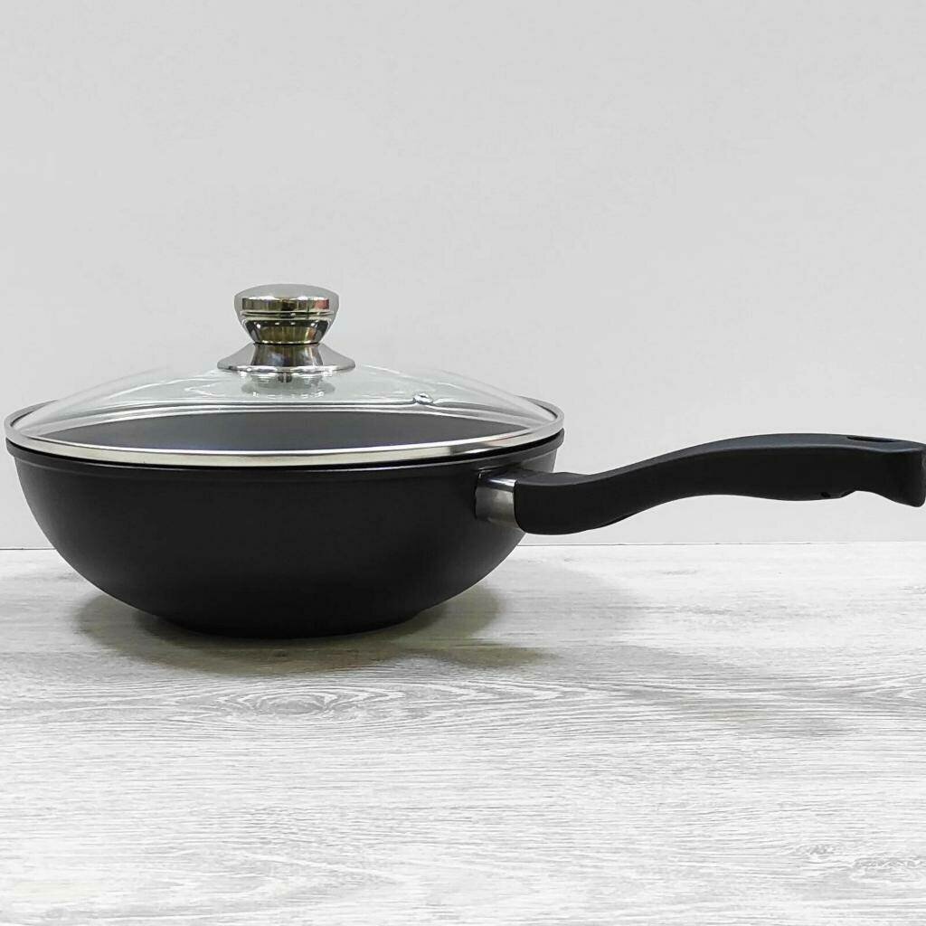 Сковорода вок 28 см с крышкой антипригарная, литая, с ручкой soft-touch, Гардарика Премьера