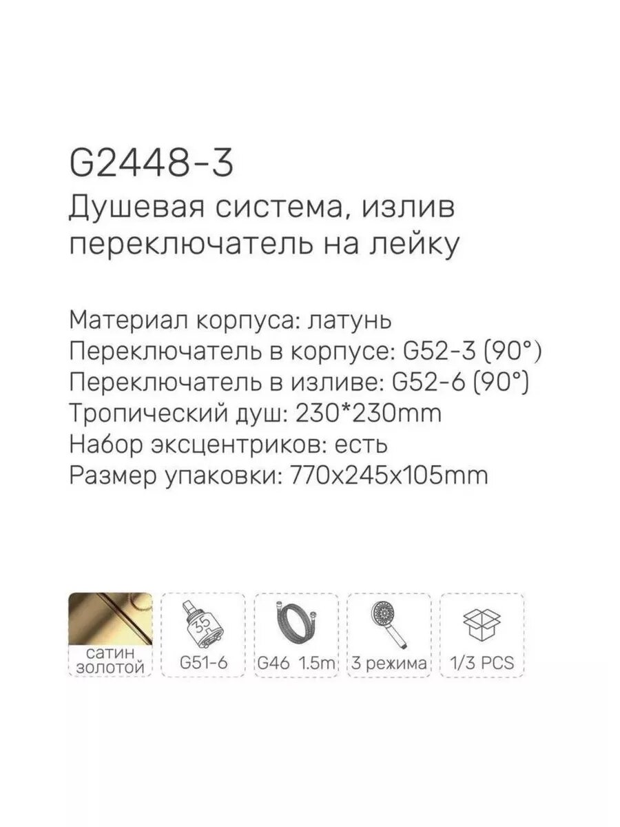 Душевая система Gappo G48-3 G2YR44PJ8-WI3 сатин золотой