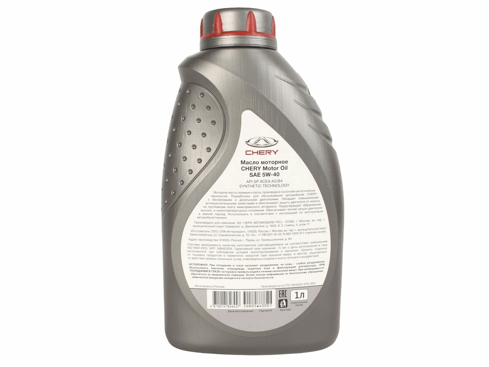 Масло Chery Motor 5W-40 API SP, ACEA A3/B4 SN/CF 1L CHERY5W401 Chery Amulet
