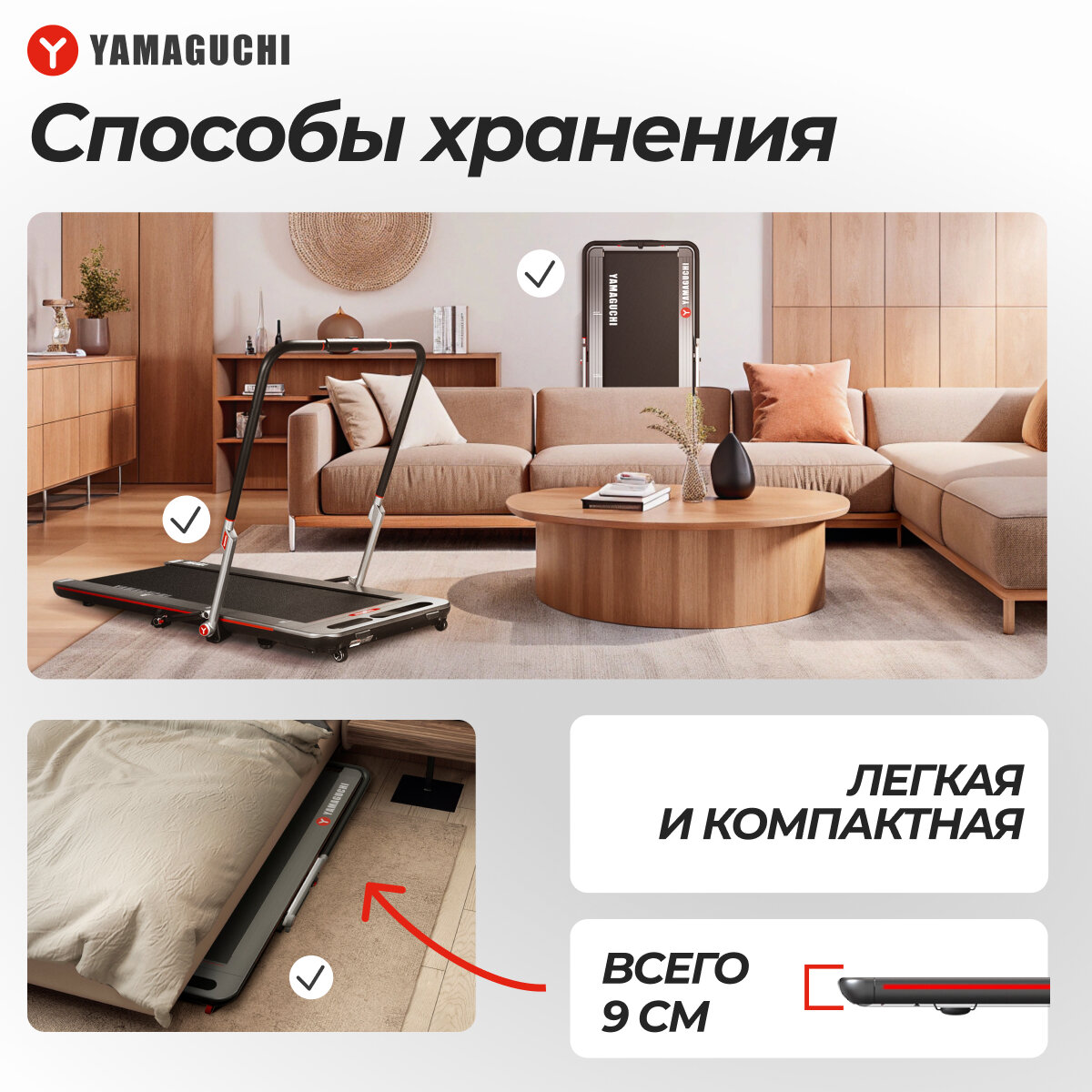 Беговая дорожка Yamaguchi MAX PRO-S, скорость до 20 км/ч, угол наклона от 0 до 15%, 12 амортизирующих демпферов