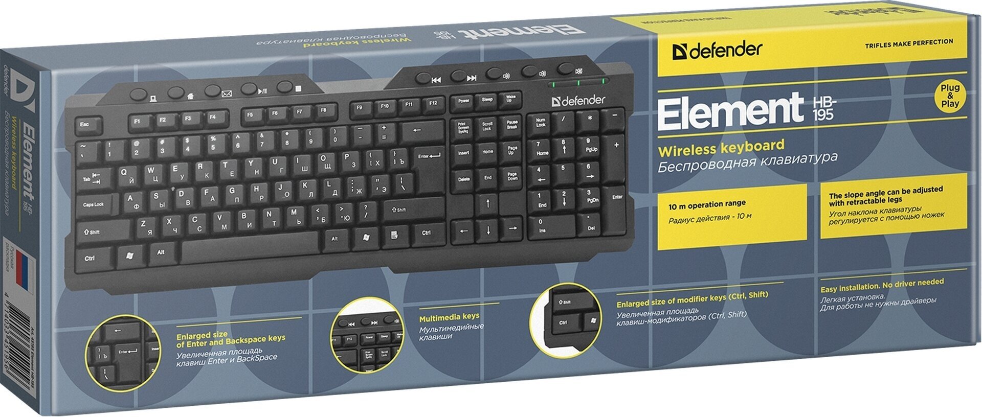 Defender Element HB-195 RU [45195] Беспроводная клавиатура черный, мультимедиа .
