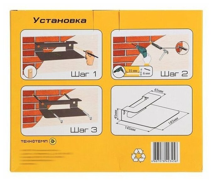 Кронштейн для телевизионных приставок Trone Digital настенная полка до 8 кг 145*185мм - чёрный