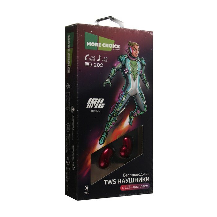 Vertux Bluetooth-наушники беспроводные Smart вакуумные c LED дисплеем More choice BW22S TWS Red наушники в Курчатов