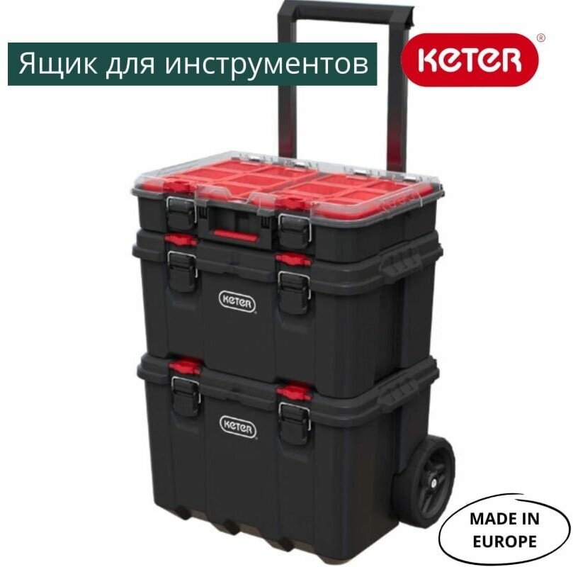 Ящик для инструментов KETER 17210774, Stack'N'Roll ToolBox Black
