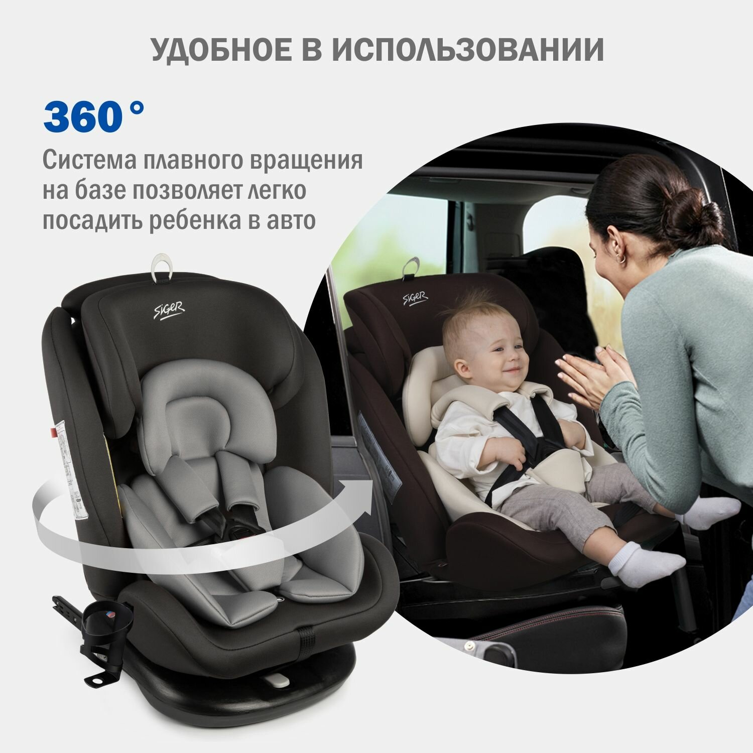 Автокресло детское поворотное с рождения до 12 лет / Isofix / 0+/1/2/3/до 36 кг 0-36кг / 0-12лет, Siger Престиж , маренго