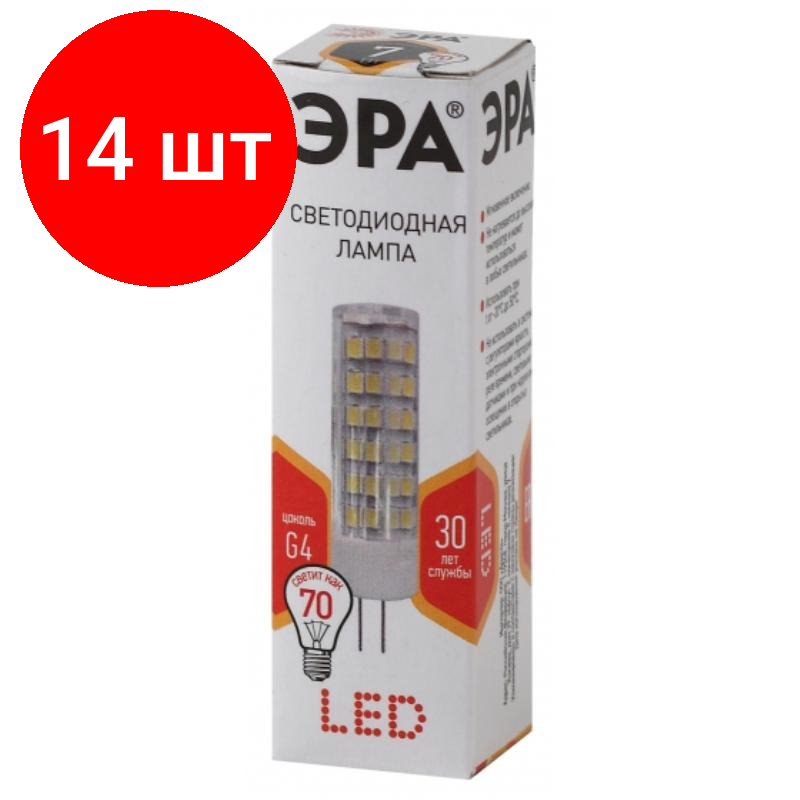 ERA Комплект 14 штук, Лампа светодиодная ЭРА LED JC-7W-220V-CER-827-G4 7Вт G4 2700К Б0027859 лампочки в Курчатов