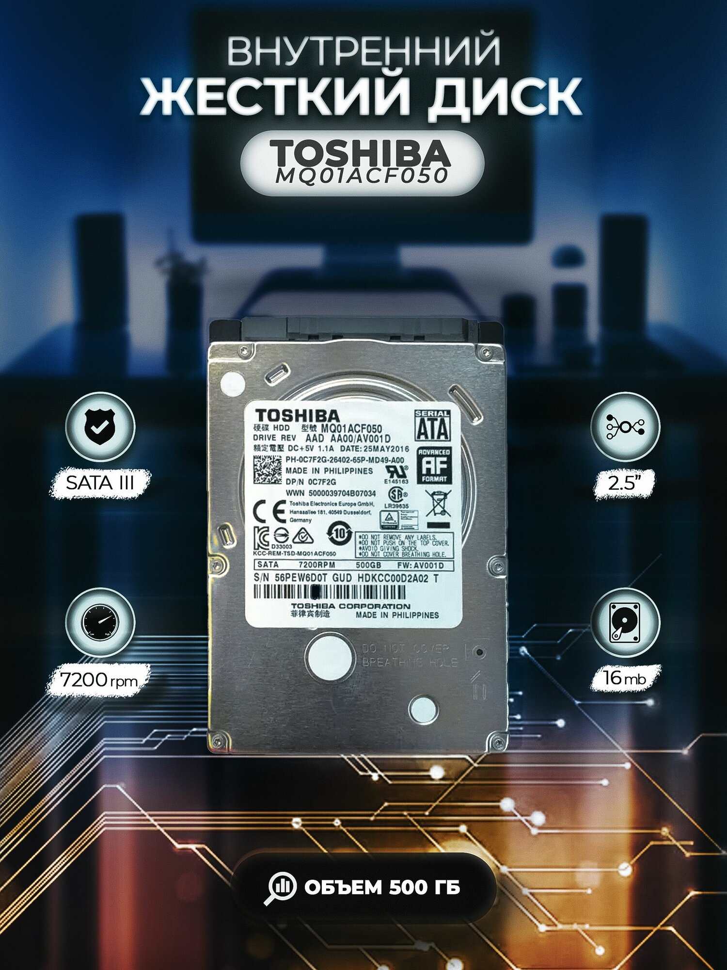 Для домашних ПК Toshiba Жесткий диск Toshiba MQ01ACF050 500Gb 7200 SATAIII 2,5" HDD