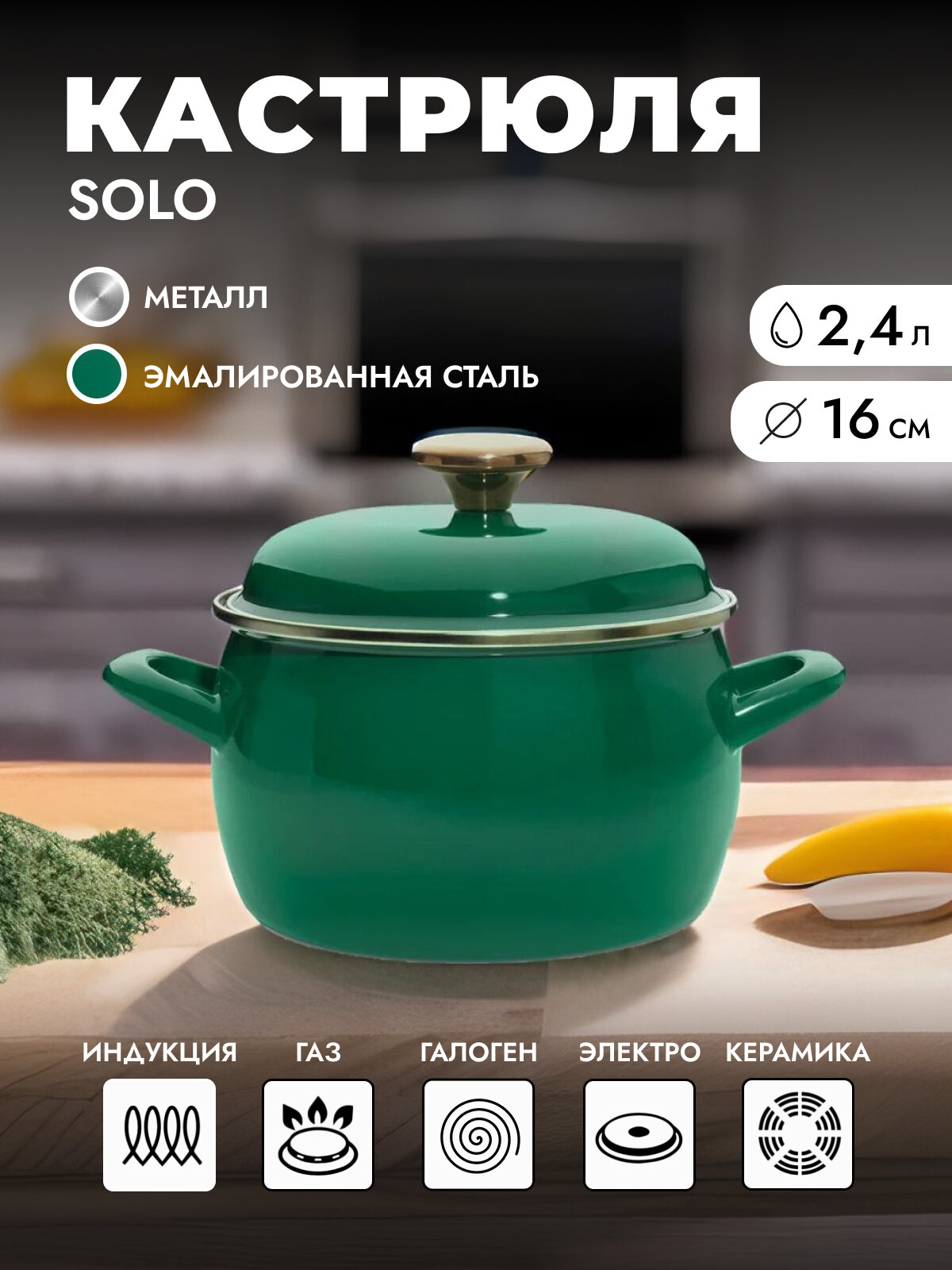 Кастрюля эмалированная Metrot Solo, с крышкой, 2,4 л