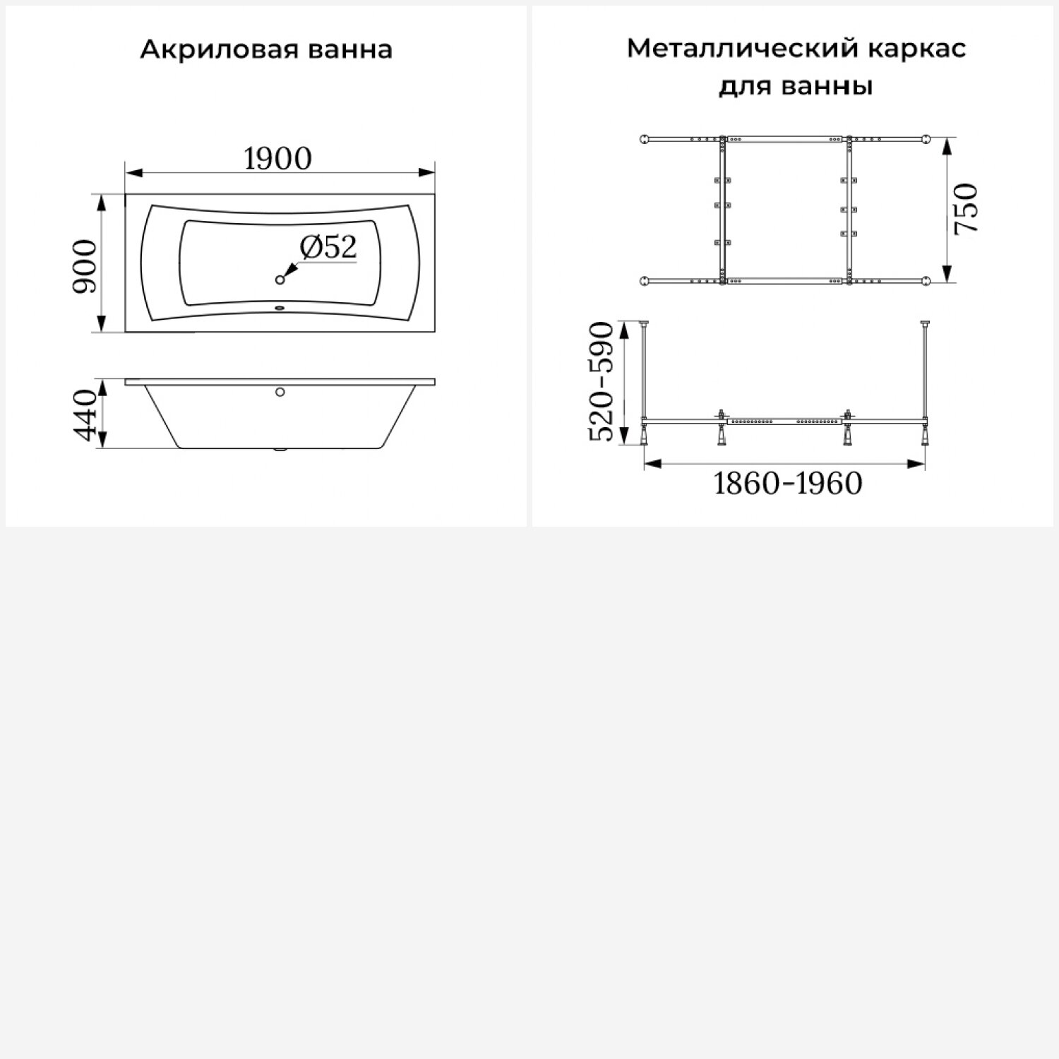 Акриловая ванна 190х90 см Lavinia Boho Evan набор 2 в 1 S1-37110190: прямоугольная ванна, усиленный металлический каркас