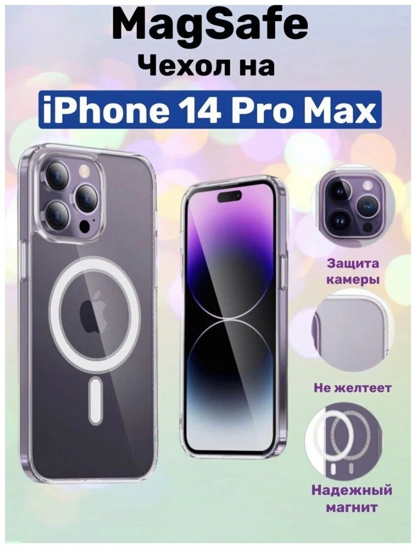 AV-Retail / Чехол силиконовый прозрачный с MagSafe для iPhone 14 Pro Max / Чехол усиленный противоударный