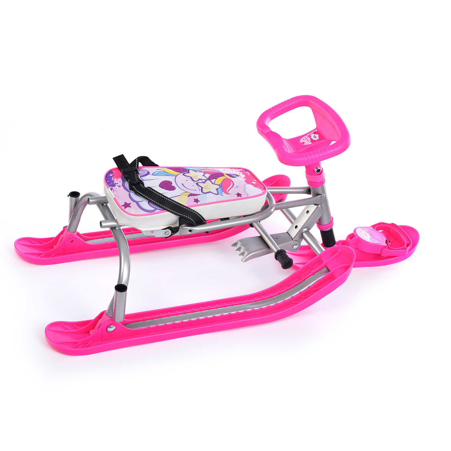 Снегокат Nika Kids TWINY 2 «Единорог», TW2-M/EP, с родительской ручкой, со спинкой и ремнём безопасности, цвет розовый, серый