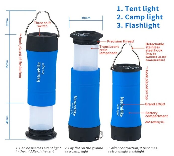 Фонарь кемпинговый Naturehike Tent Camp Lamp With Three Lights Blue