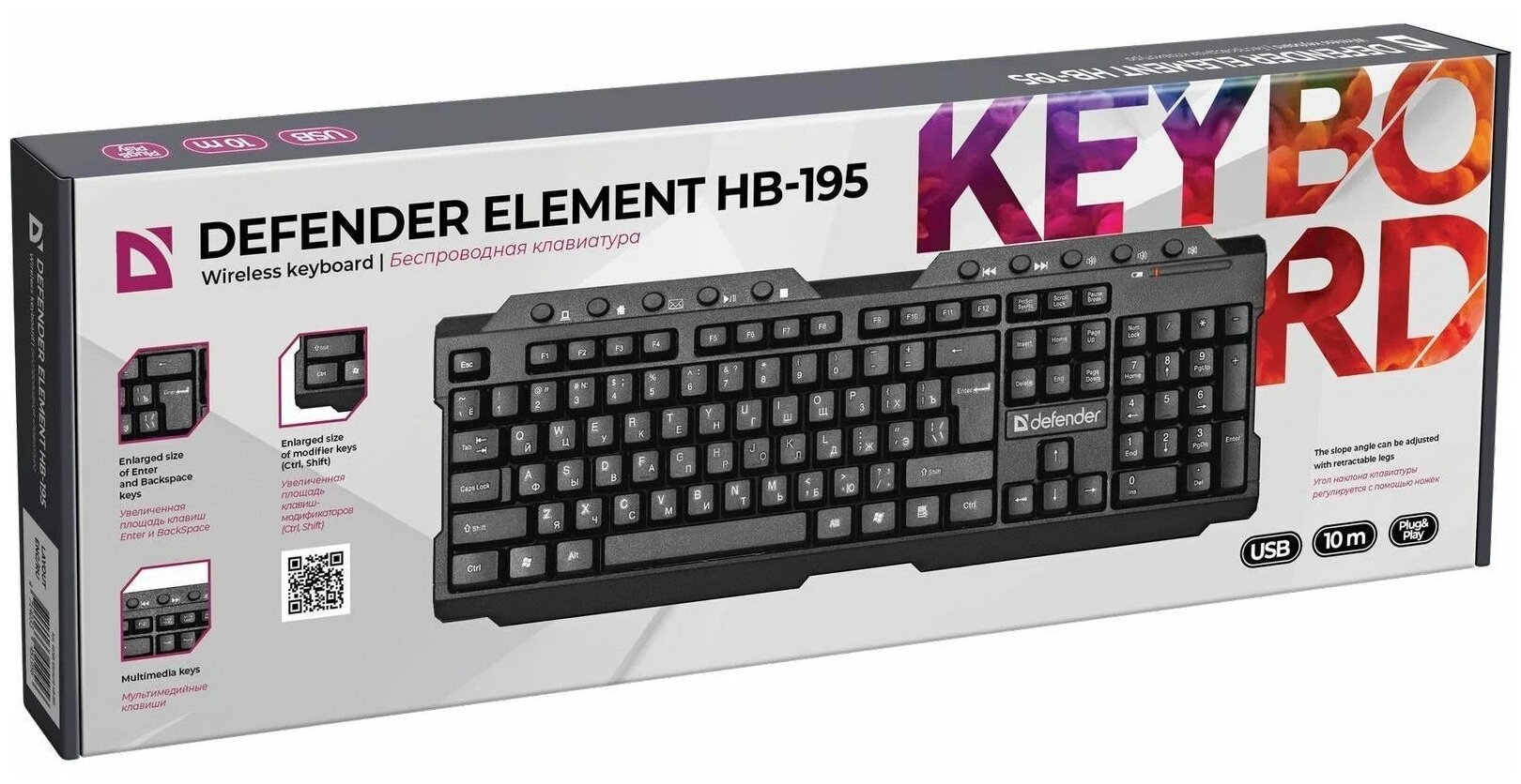 Клавиатура беспроводная DEFENDER Element HB-195 RU, USB,