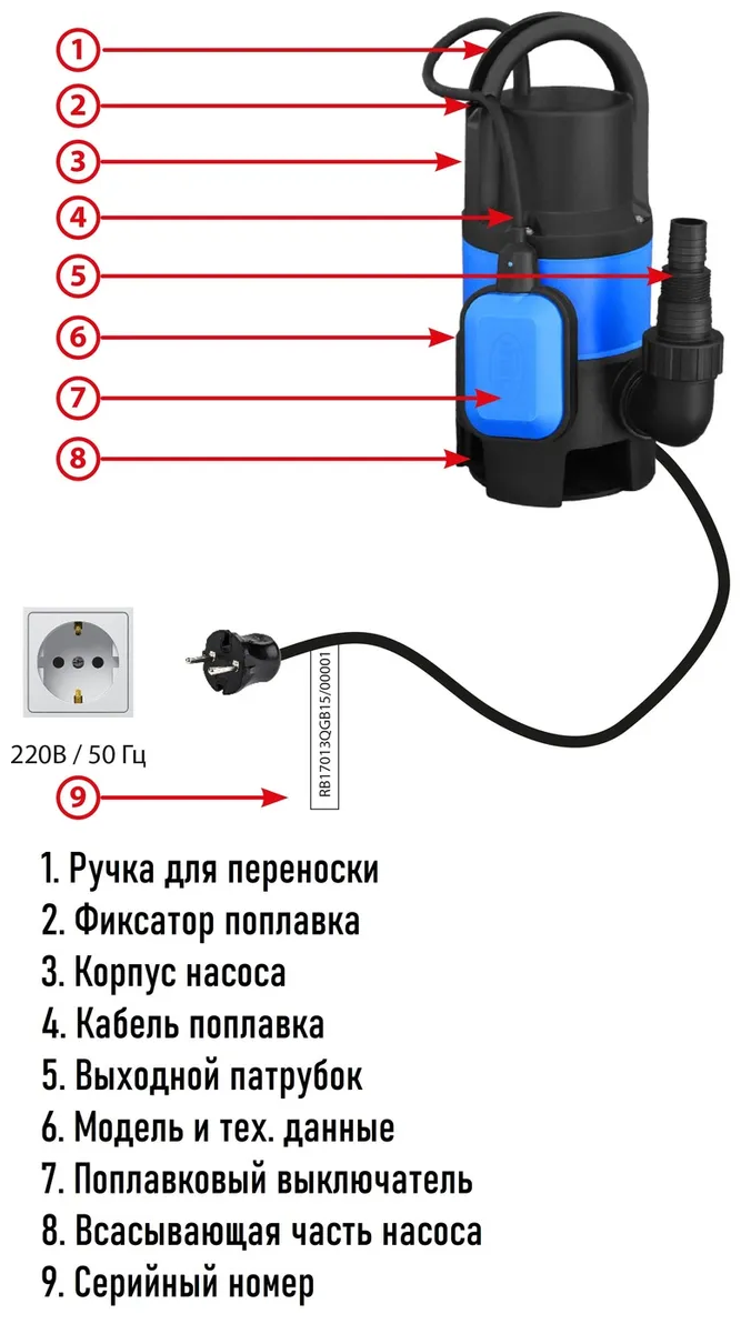 Насос фекальный JEMIх GS-400, 400 Вт, напор 5 м, 125 л/мин, диаметр частиц 35 мм