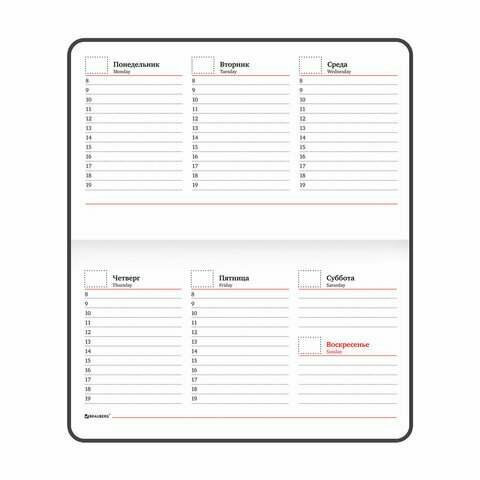 Еженедельник недатированный Brauberg малый, 95х155 мм, а6 rainbow под кожу, 64 л, красный (114484)