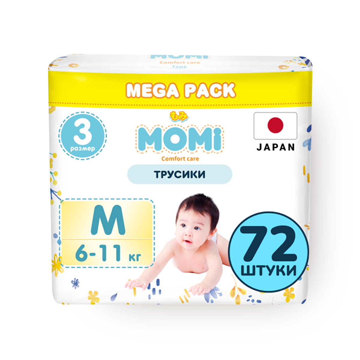 Momi Подгузники-трусики Momi COMFORT CARE MEGA, M (6-11 кг.), 72 шт. подгузники (памперсы) в Курчатов