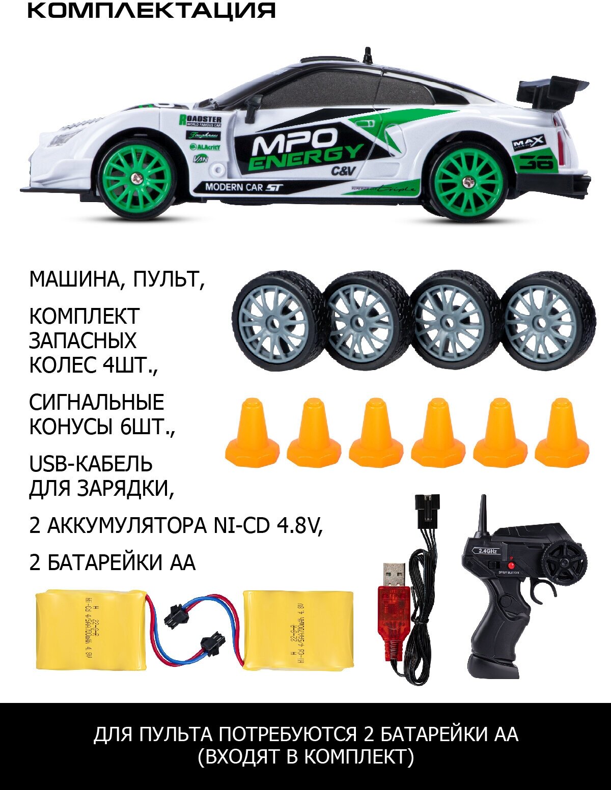 Машинка детская на радиоуправлении ТМ AUTODRIVE, М 1:24, 4 канала, сменные шины, пульт управления, зарядное устройство, свет, белый, JB1167943