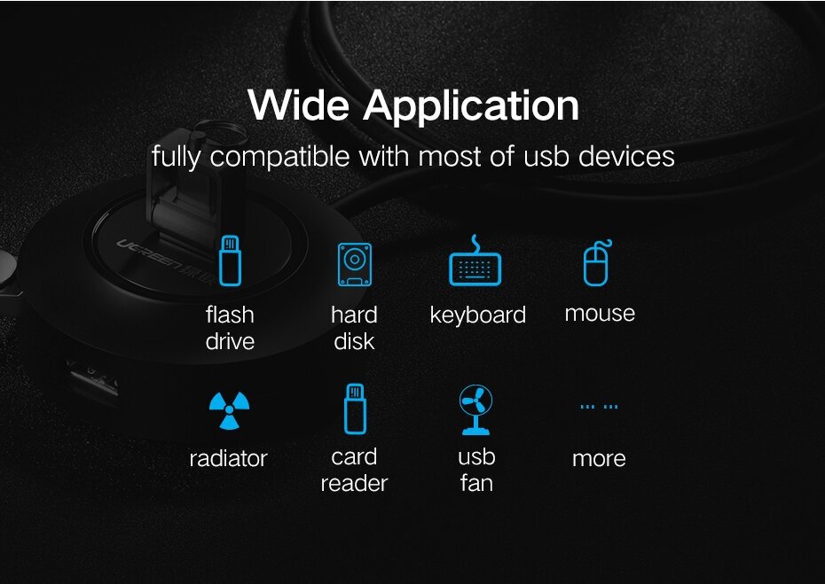 Ugreen cr106 usb 2.0 hub 4 ports 1m black