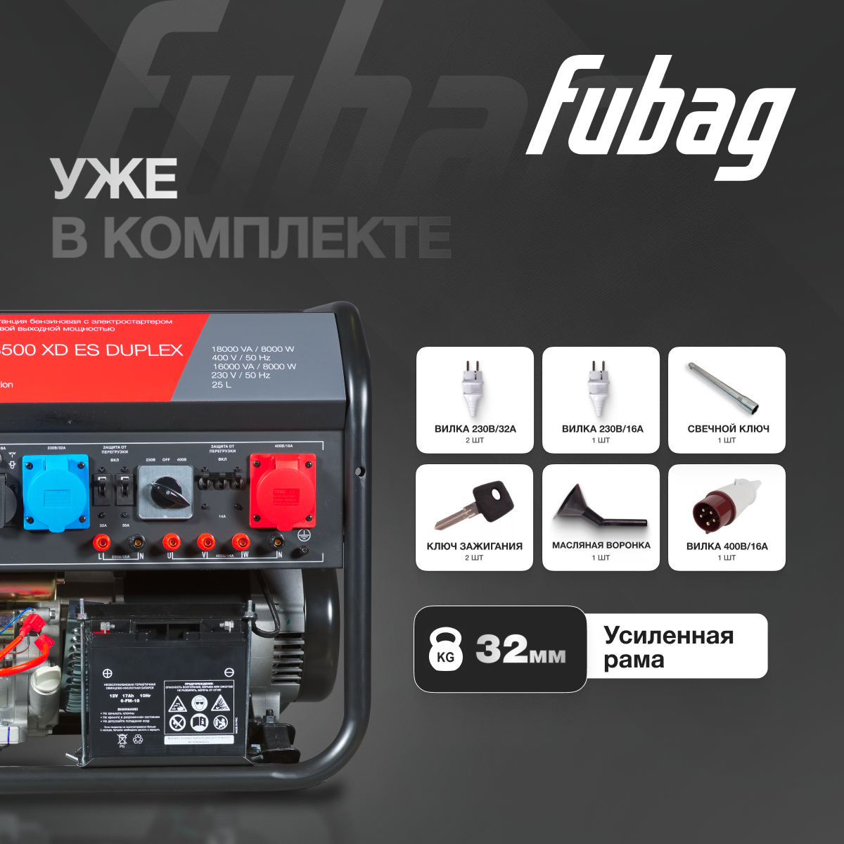 Генератор бензиновый FUBAG BS 7500 A ES DUPLEX с электростартером и коннектором автоматики, 7,5 (14,0) кВА, 230 В, 641087