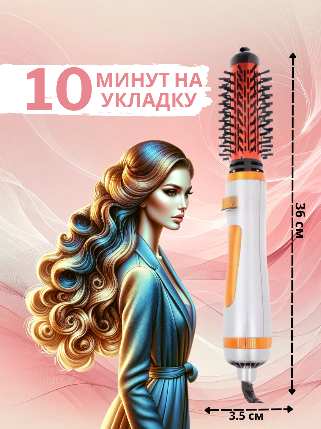 Фен - Щетка для волос профессиональная вращающаяся 1200Вт в комплекте 2 насадок