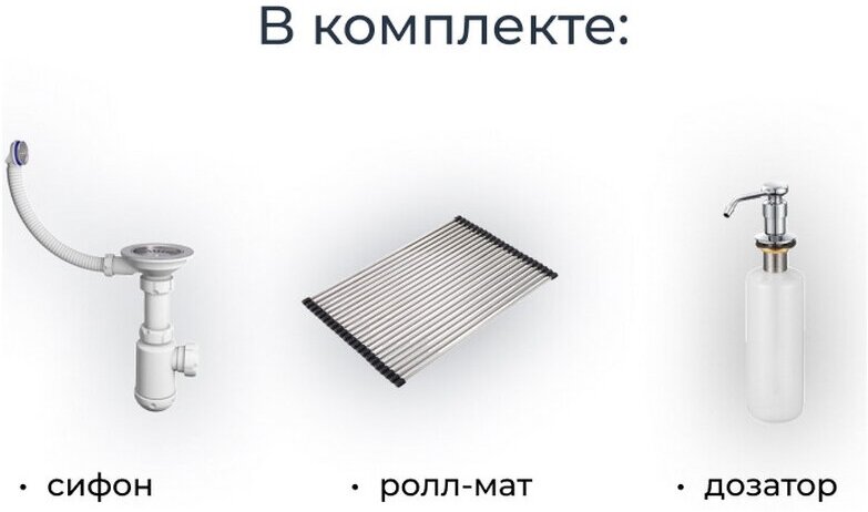 Кухонная мойка Granula KS-6004 с дозатором и ролл-матом, черный