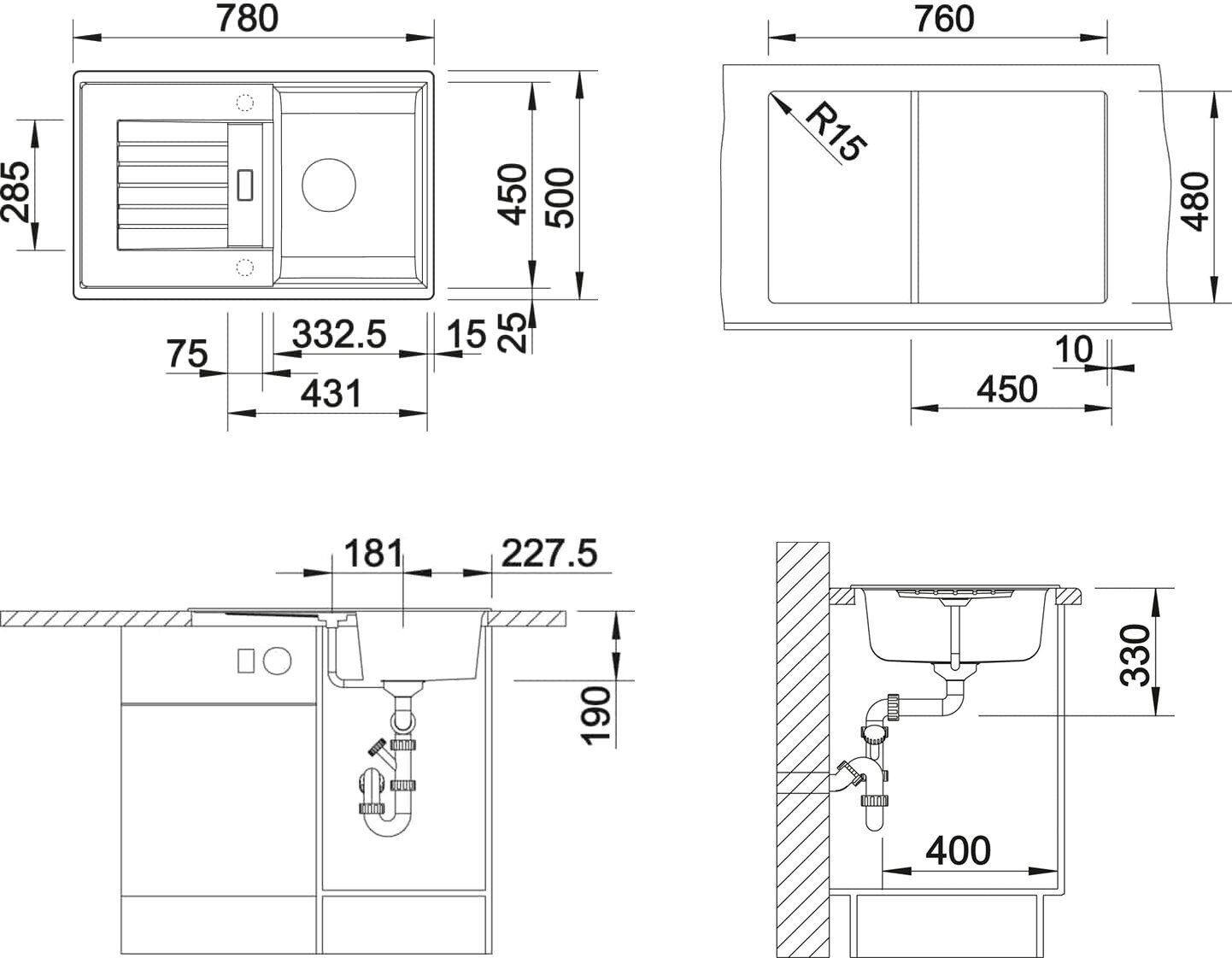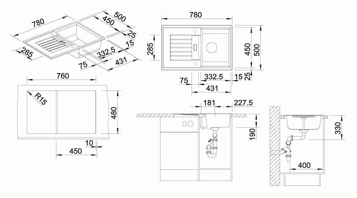 - 760x480 мм / угловой радиус врезки 15 мм /