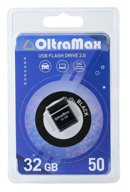 Флешка OltraMax 50, 32 Гб, USB2.0, чт до 15 Мб/с, зап до 8 Мб/с, чёрная, цвет чёрный