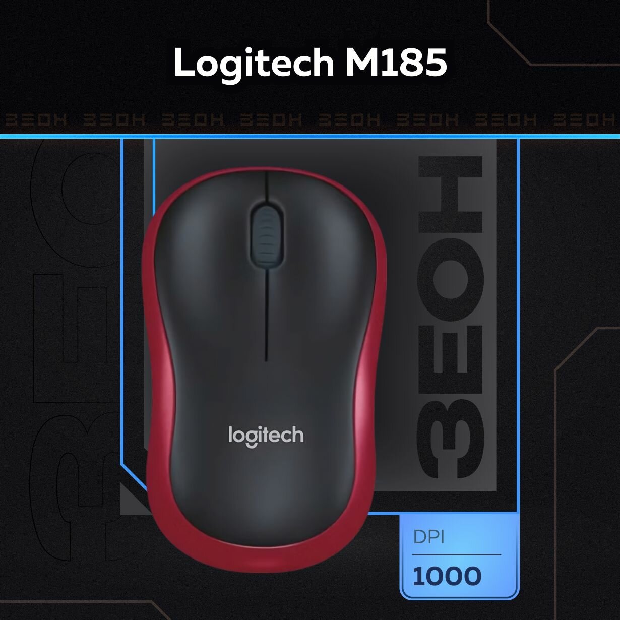 Мышь Logitech M185 красный/черный оптическая (1000dpi) беспроводная USB1.1 для ноутбука (2but)