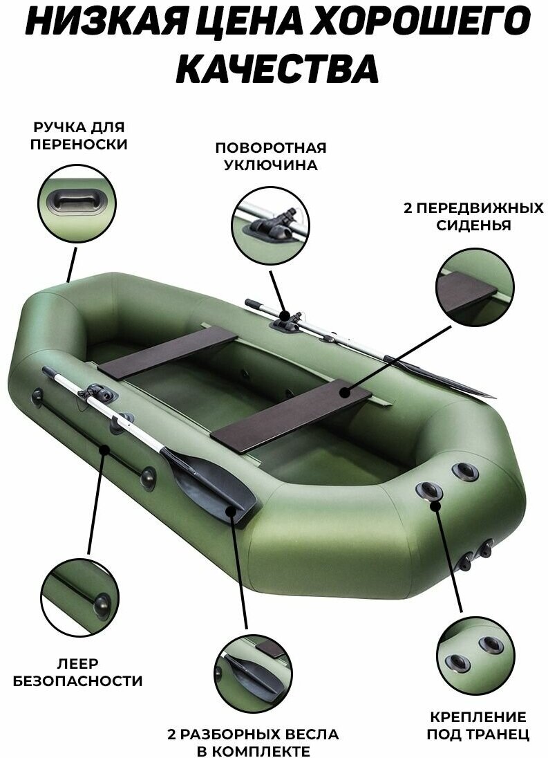 Aquatic Лодка надувная Аква-Мастер 280, ПВХ, армированная, зелёная, двухместная надувные лодки в Курчатов