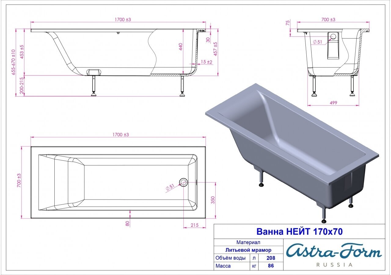 Amidicon Ванна из литьевого мрамора Astra-Form Нейт 150x70 см (белая, глянцевая) ванны в Курчатов