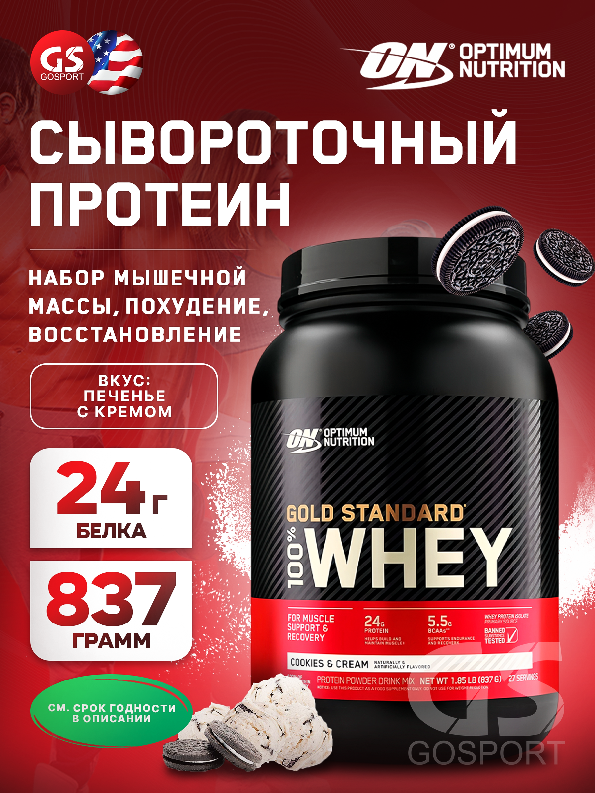 OPTIMUM NUTRITION Whey Protein Gold Standard (908 г) (Печенье-крем)