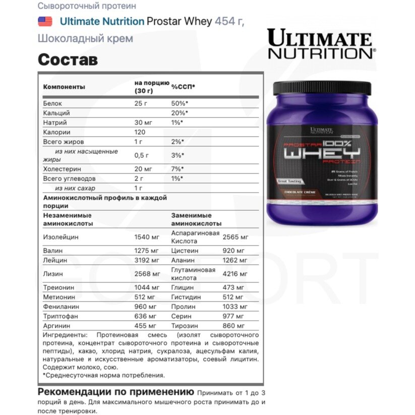 IHS Technology Протеин Ultimate Nutrition Prostar Whey 454 гр Шоколадный Крем протеины в Курчатов