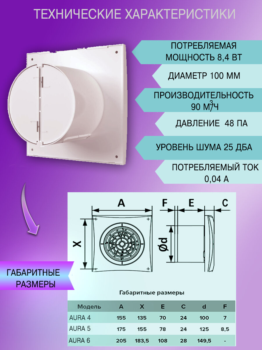 Вентилятор осевой вытяжной DiCiTi Aura 4C, с обратным клапаном, D 100, 8,4 Вт
