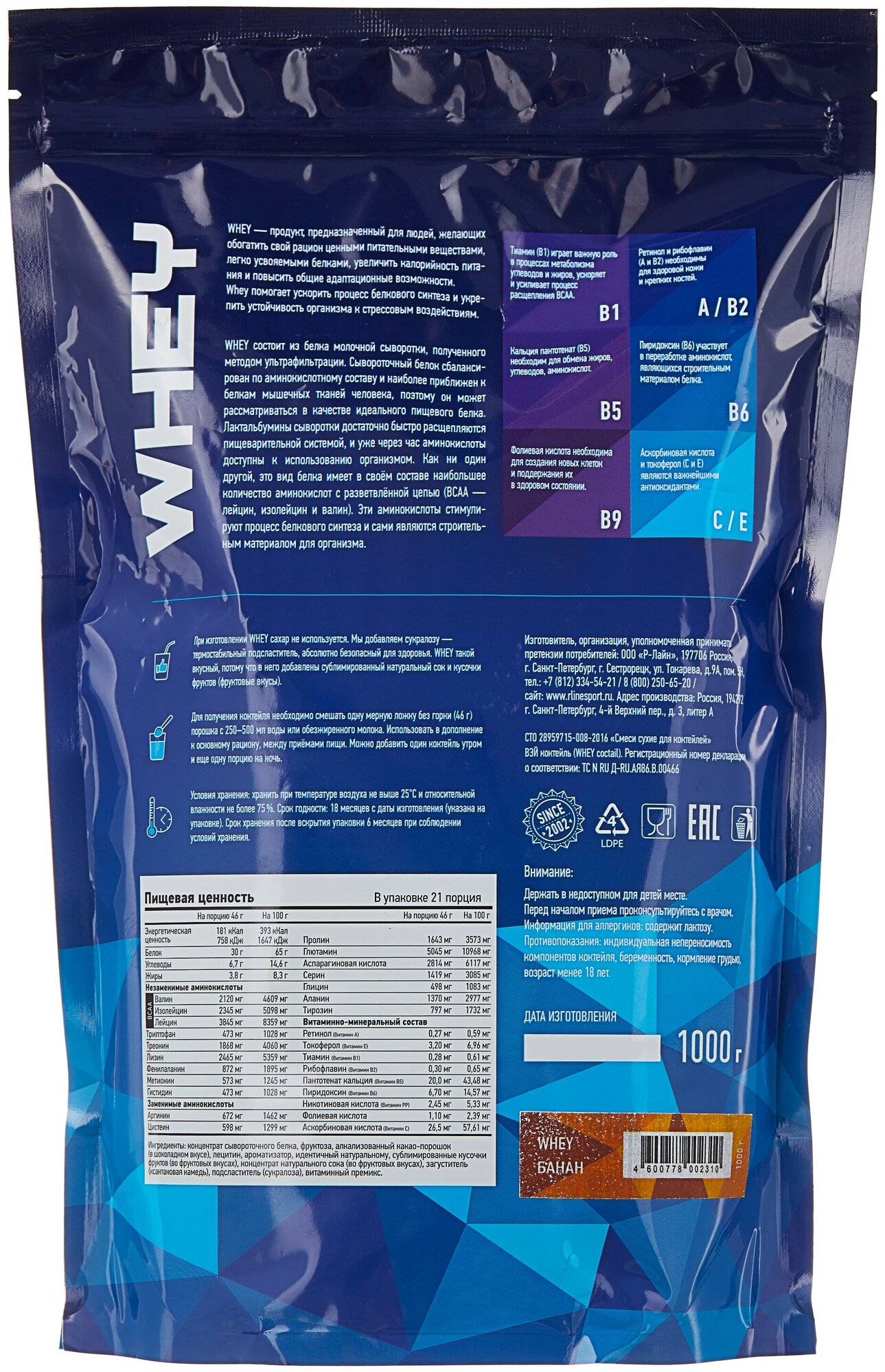 Протеин сывороточный RLINE Nutrition Whey, Банан, 1000 гр