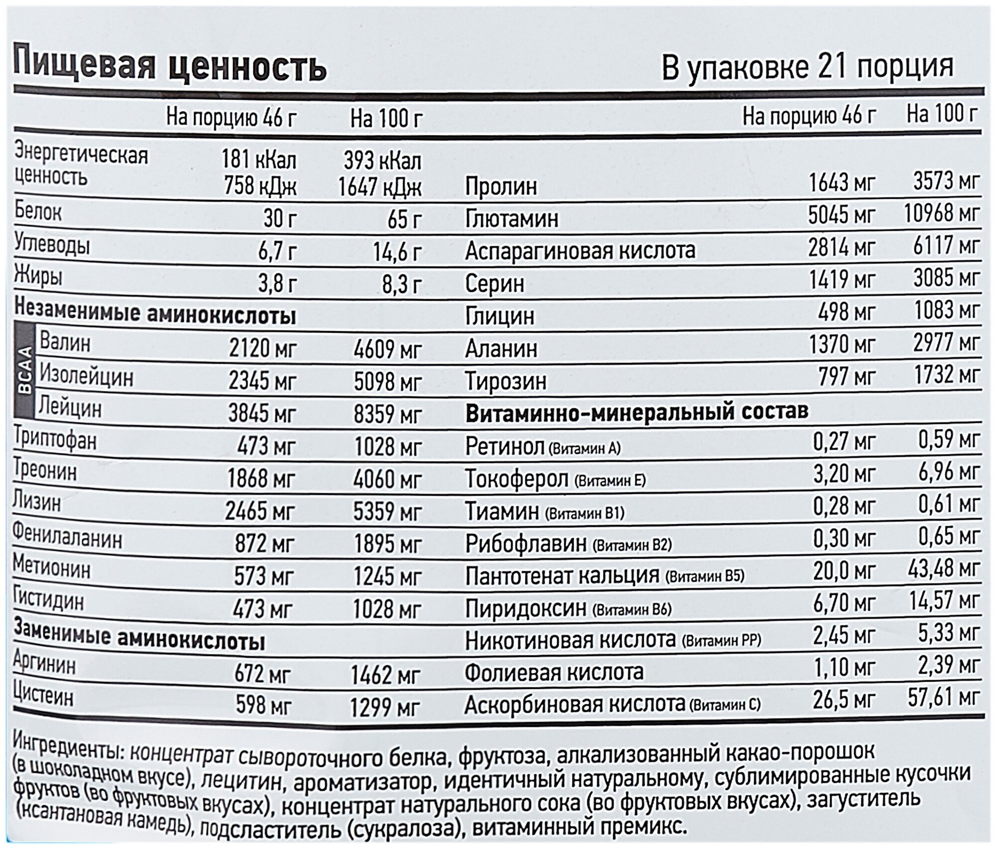 - Кол-во белка в порции