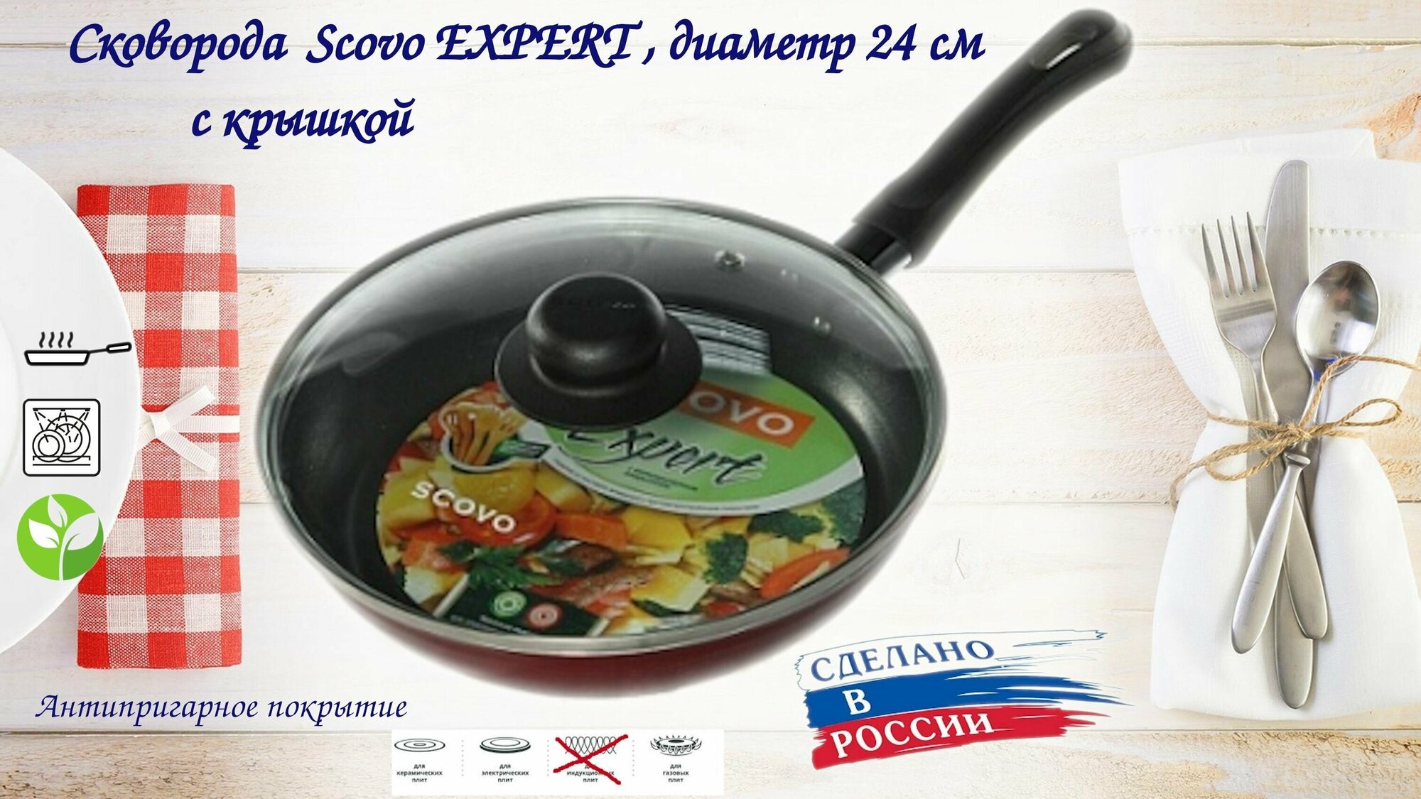 SCOVO Сковорода Expert, d24 см, стеклянная крышка