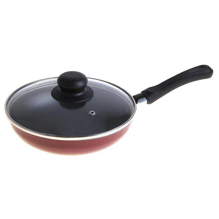 Сковорода "Эксперт", d=24 см, стеклянная крышка, пластиковая ручка, антипригарное покрытие, цвет бордовый