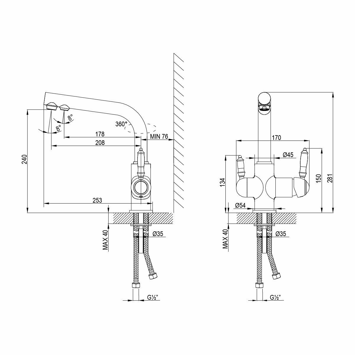 4861B Вилла Смеситель для кухни с подключением к фильтру питьевой воды, бронза LEMARK