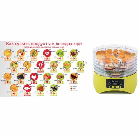 Tekhniko Дегидратор сушилка Oursson DH2302D, 6 поддонов, 400 Вт, конвективный, зеленое яблоко сушилки фруктов в Курчатов