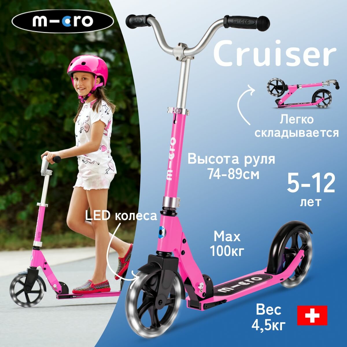 Lemantino Двухколесный легкий самокат Micro Cruiser LED розовый 200 мм самокаты в Курчатов