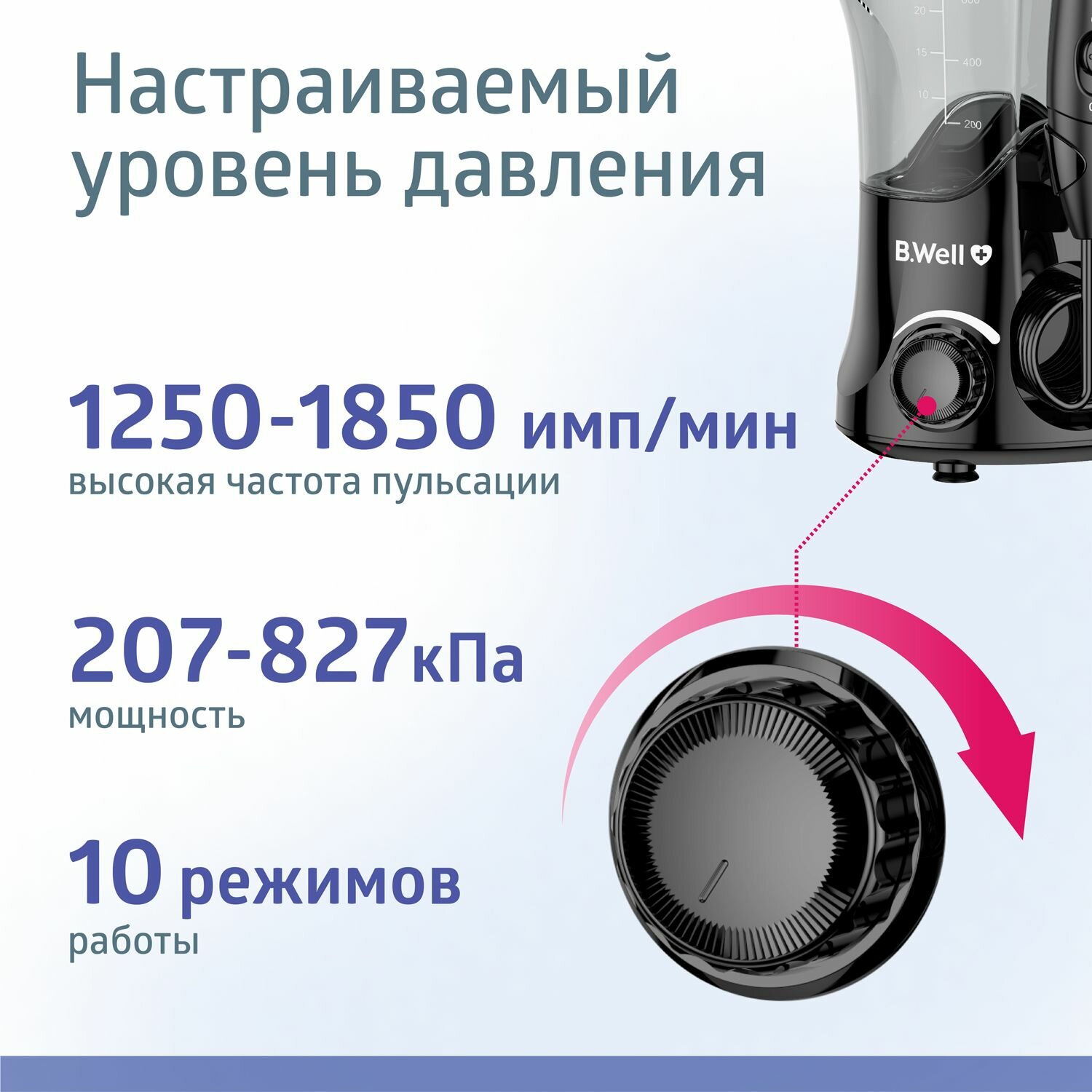 Ирригатор B.well WI-922, стационарный. Стационарный. Семейный. 7 насадок. 10 режимов регулировки