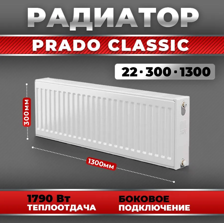 Радиатор панельный PRADO Classic 22*300*1300, 1905 Вт, боковое подключение