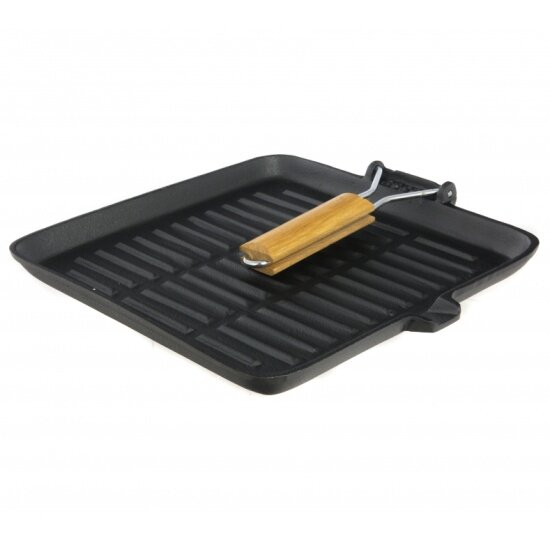 Сковорода-гриль чугунная с дерев складной ручкой, квадратной формы, PADELLA, 28*28 см