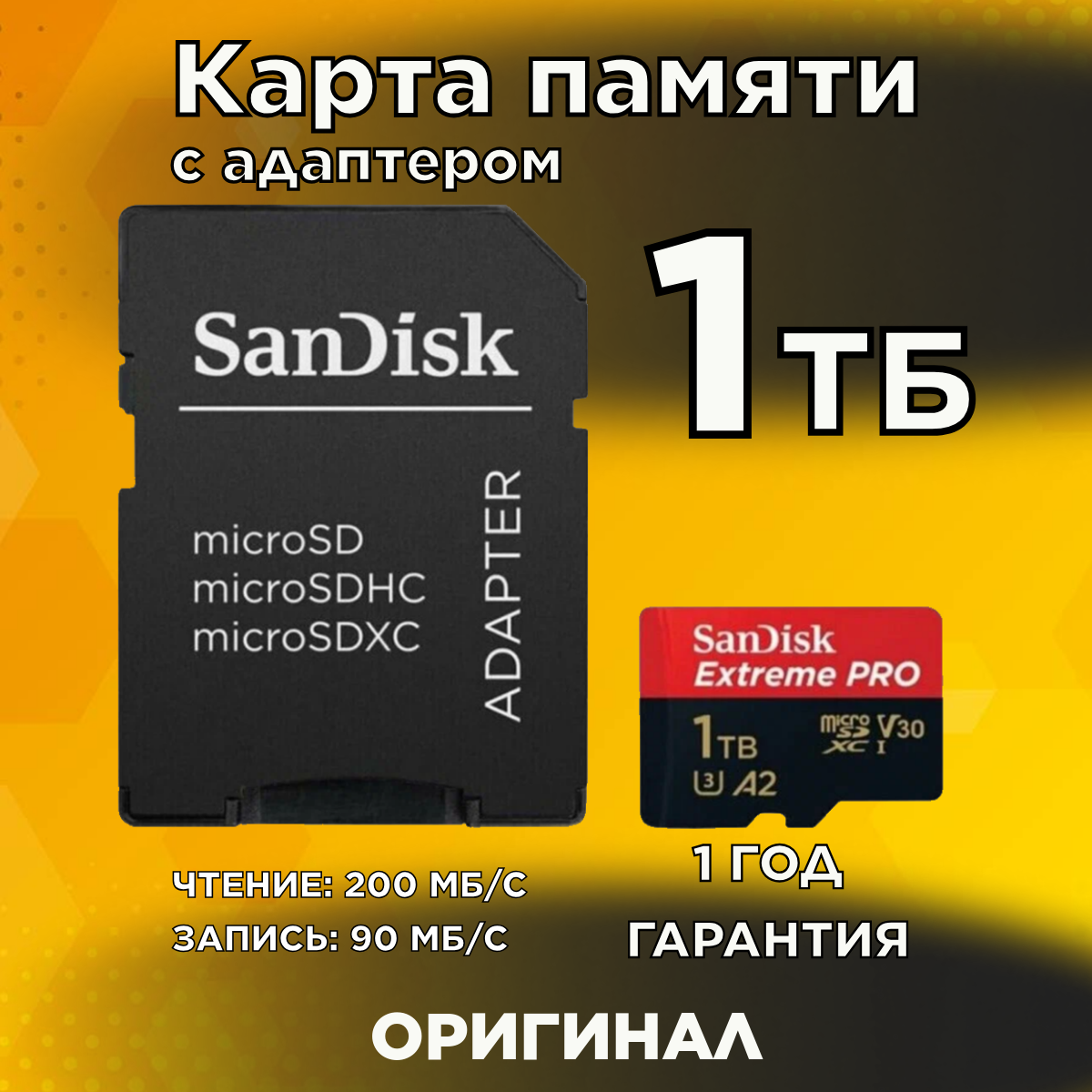 Карта памяти SanDisk MicroSDXC 1TB Extreme Pro 170MB/s UHS-I A2 V30 + SD-адаптер