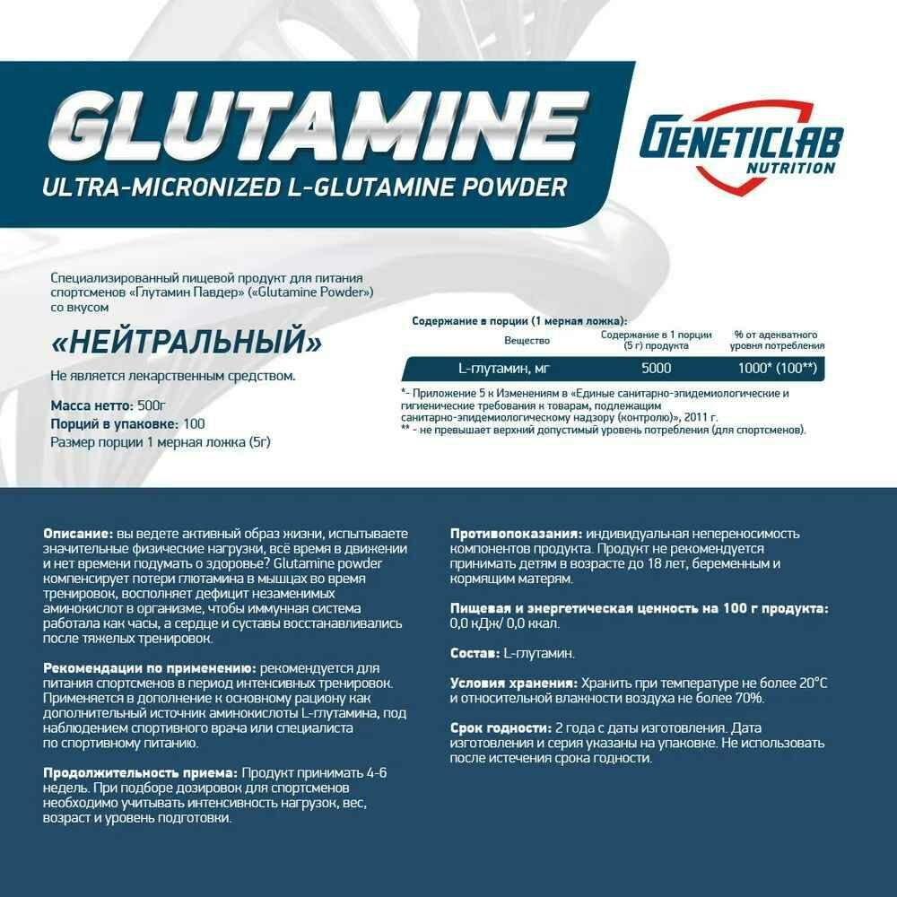 Аминокислота Geneticlab Nutrition Glutamine, нейтральный, 500 гр.