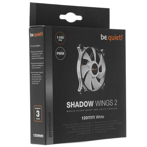 be quiet! Вентилятор be quiet! SHADOW WINGS 2 White [BL089] [120 x 120 мм, 4 pin, 400 об/мин - 1100 об/мин, - системы охлаждения в Курчатов
