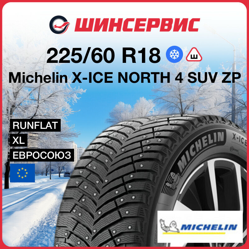 Michelin Шина Michelin(Мишлен) X-ICE NORTH 4 SUV 225/60 R18 104H RunFlat зимняя шипованная шины в Курчатов